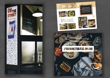 Je réalise également les supports visuels adaptés à votre événement : menus personnalisés, invitations, prospectus ou création d’éléments graphiques spécifiques.
